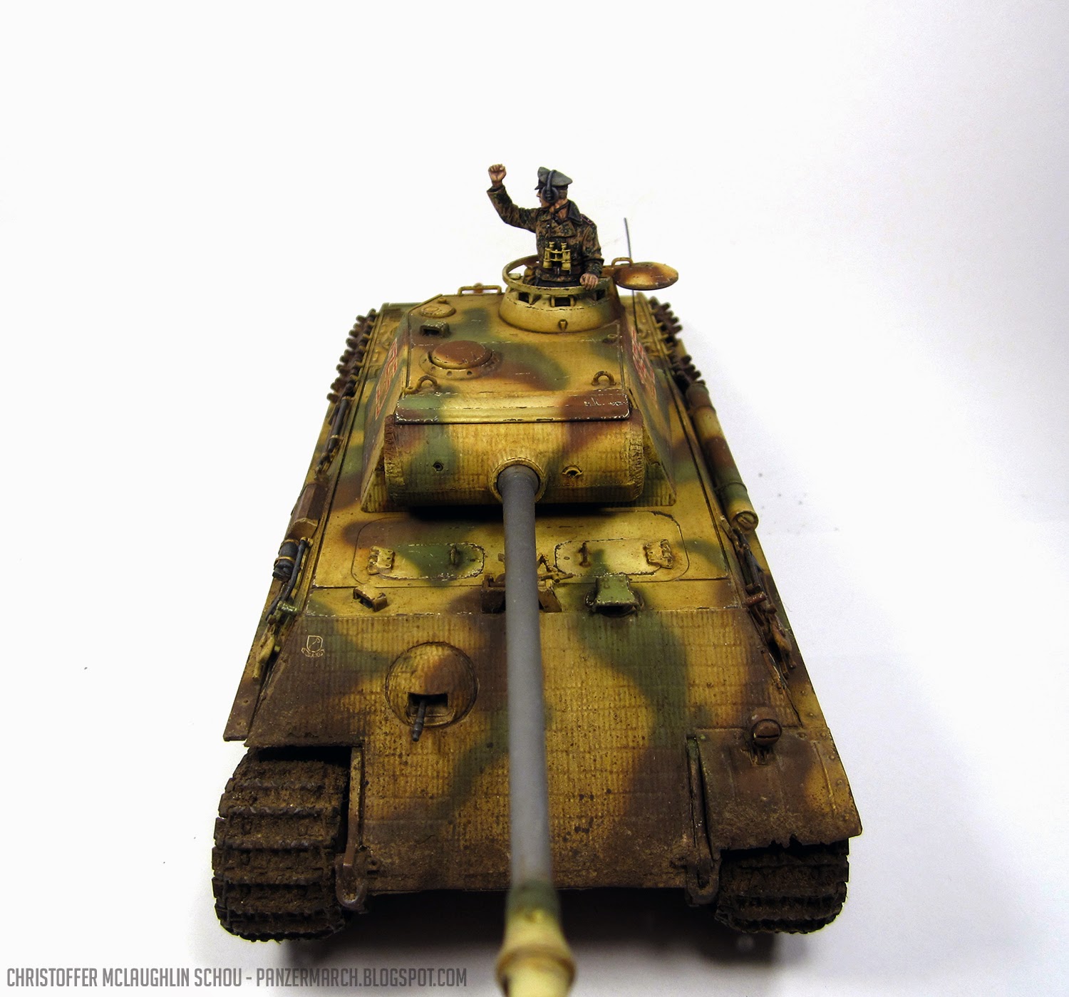 I think it turned out pretty well considering how few 1:35 scale vehicles I have painted for a long time now. The tank and figure is painted and weathered with a combination of Ammo, AK and Vallejo paints and products. The tank it self is build basically out of the box with few additions of after market stuff (The Barrel, Engine grills and Zimmerit). The only thing I can say about the kit is that Tamiya is such a joy to build, sure it might not be as detailed as the newer Dragon kits, but considering that this kit is more than 20 years old I still think it's quite nice, and most importantly it fits together so well and takes no time to build (Think I did it in a few hours, applying the zimmerit took longer than building the entire tank :-p).